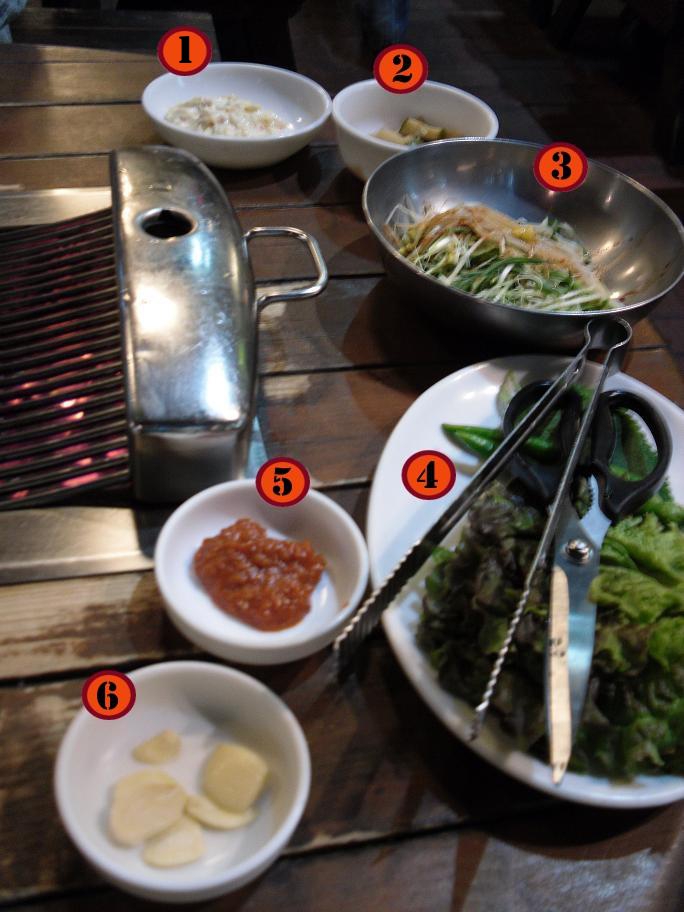 - 5 – Samjang 쌈장, I love this sauce. It’s just a little hot and sweet at the same time. You either dip a piece of meat into it and then eat it as is or bundle it up mentioned above with side dishes into a mint or lettuce leaf. Really delicious.