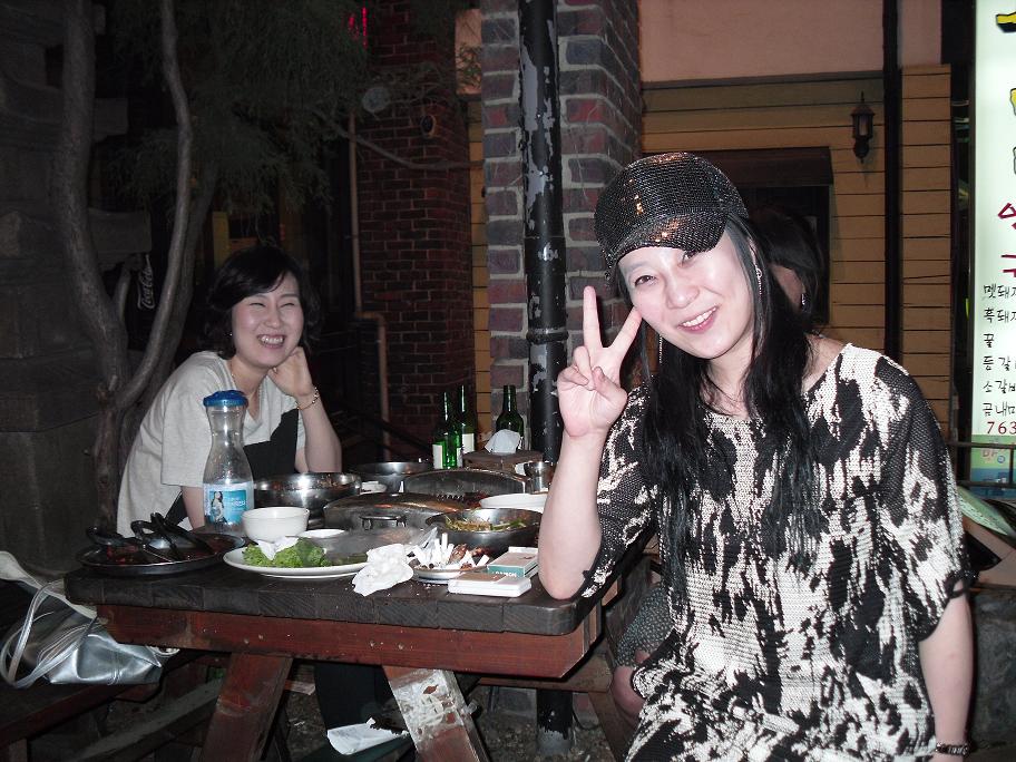 Finally, we asked a table of Koreans to take a picture of us. Being foreigners at a traditional Korean restaurant you often have strangers smiling and looking at your direction. The Korean women took a picture of us but not before they made us take one of them!