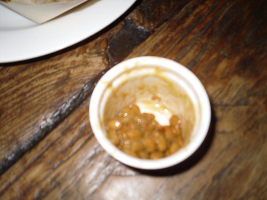 Finally it was on to the nato, which is a traditional Japanese breakfast snack/meal. These are fermented soy beans to which you add some Japanese mustard. We all laughed while I was eating them because Hosaka noticed that the beans in this particular dish were from Canada, but it was a Japanese delicacy, that I as a Canadian was trying for the first time while in Tokoyo Japan ;-) It looks like beans that are in a sticky caramel but it doesn’t taste anything like it. The beans have the consistency you would expect but the taste was foreign to me. I didn’t hate the taste but I didn’t enjoy it either. Like certain delicacies it most likely ‘grows’ on you the more you try it. Here’s a picture of the Nato in question: