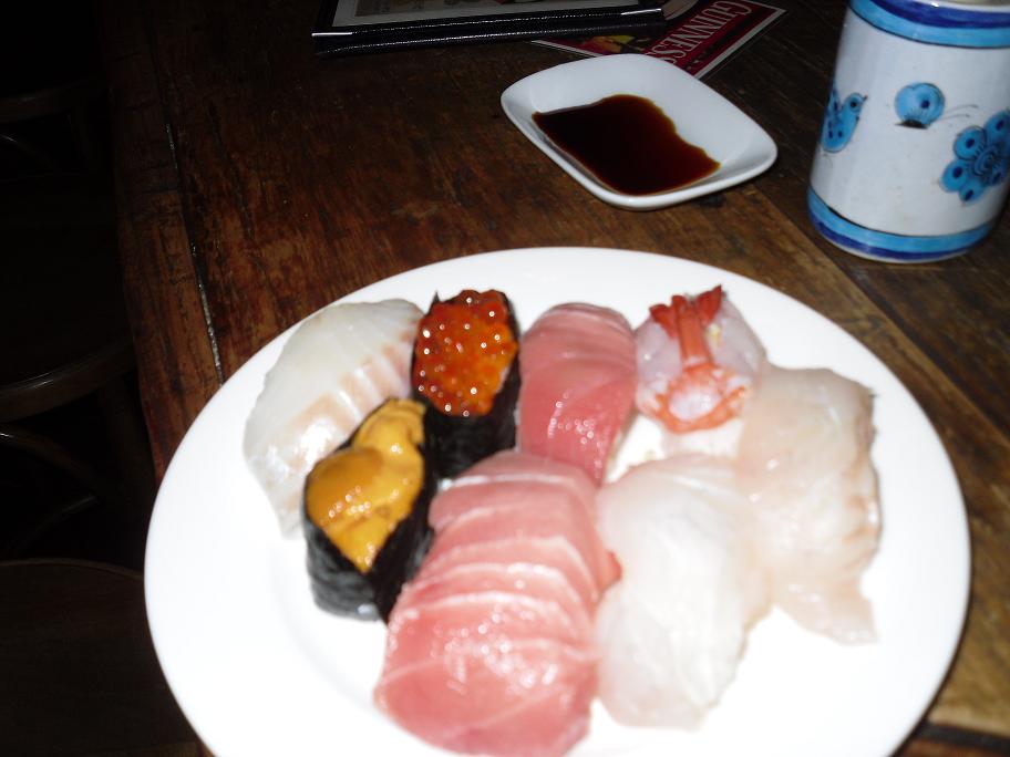 The Takoyaki was very interesting. It’s made using a light batter and contains small pieces of squid inside. It’s then covered with a variety of sauces (usually Okonomiyaki sauce, part of another Japanese dish I unfortunately didn’t get to try) and some fish shavings. It was actually very tasty but after having eaten the pasta and the sushi I was unable to finish it and asked Daiskuke and Hosaka to share some with me.