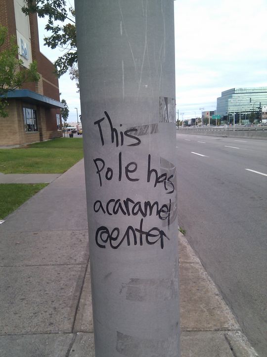 I pass this thing on my way to work. A few blocks further there’s one with a chocolate center :-)