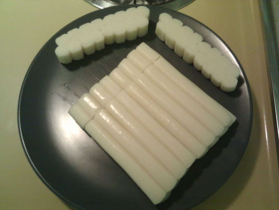Koreans eat it as street food when mixed into a spicy gochuchang sauce. It’s also found in a multitude of other dishes (Ramen noodles, chicken dishes, and even some seafood dishes). Here’s a quick picture of the stuff as I was cutting it up to get it ready for the freezer: