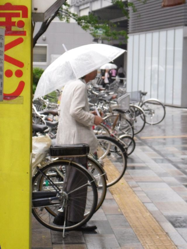 Image of a Japanese man I encountered while exiting the Tokyo subway train station. It was still early in the day and he was drinking some type of hard alcohol straight from the bottle. As the rain fell, from under his umbrella he stared blankly at the top of a nearby high rise tower. I got the distinct impression from the look on his face that he was completely burnt out, drained to the point of breaking. I tried to be respectful while capturing the picture which is why it's slightly out of focus. It was a strange greeting as I stepped out into the streets of Tokyo city.