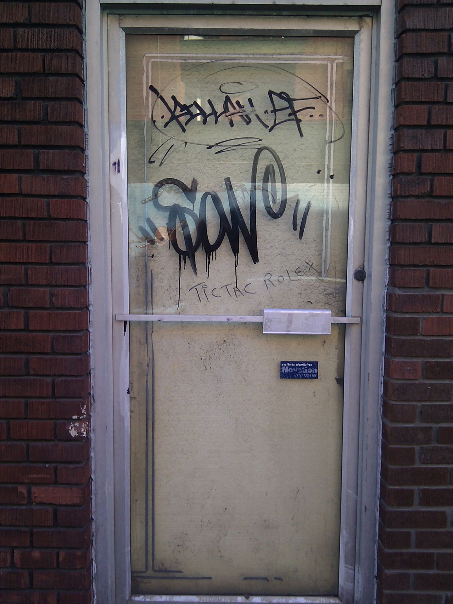 I feel the need to say for the record: I don't condone or support writing on other peoples property. That being said the two tags here were nice and I have particular interest in doors. You come across many doors in the back alleys that are covered. For the most part these doors are not seen by anyone other than some delivery drivers and the artist who draw on them.