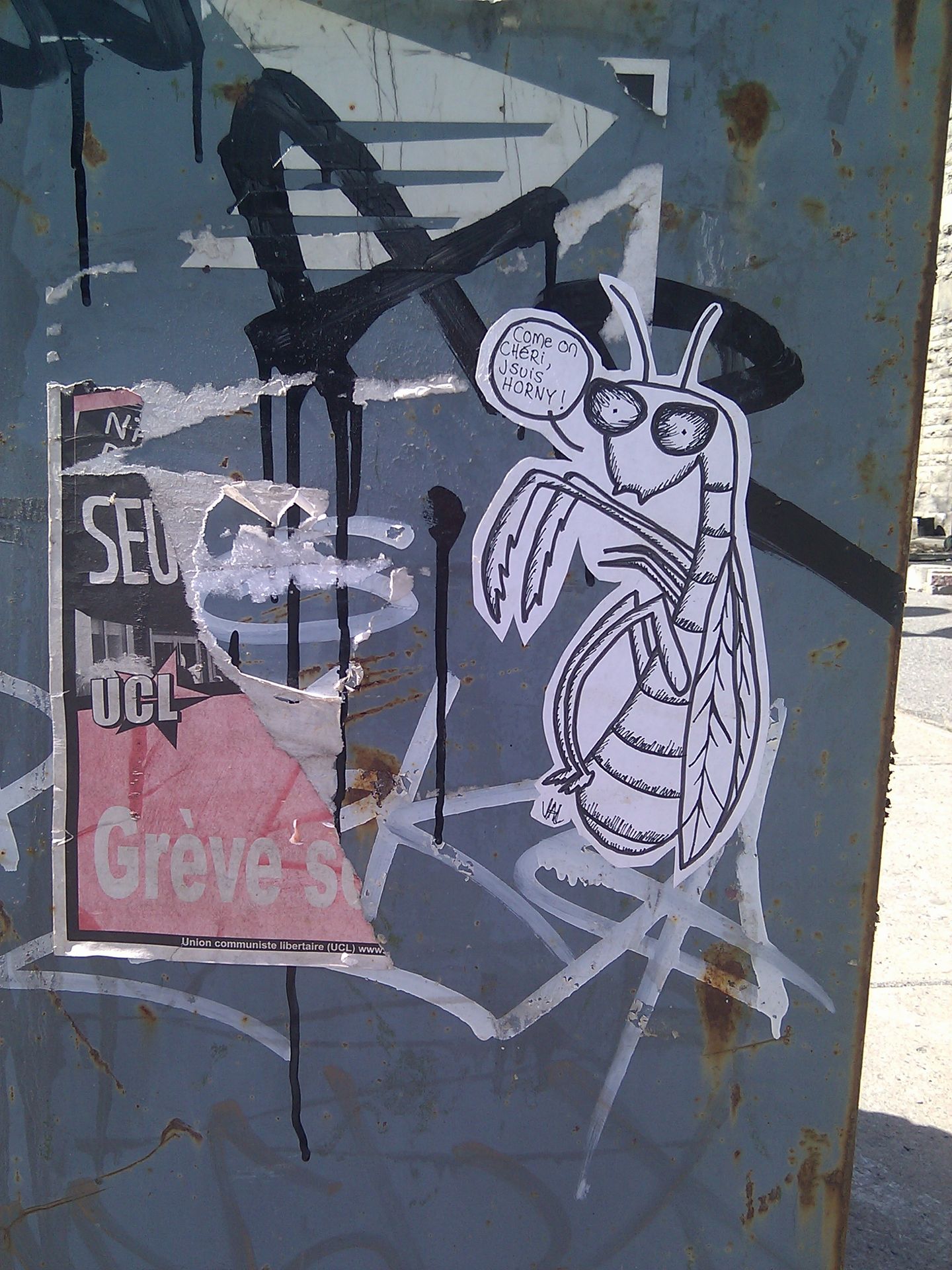 I leave you with this final picture that made me laugh. It's a mix of French and English when translated to English says "C'mon honey, I'm horny". It's obviously recently been stuck on because the weather and other writers haven't worn it down yet. Signs of spring perhaps?