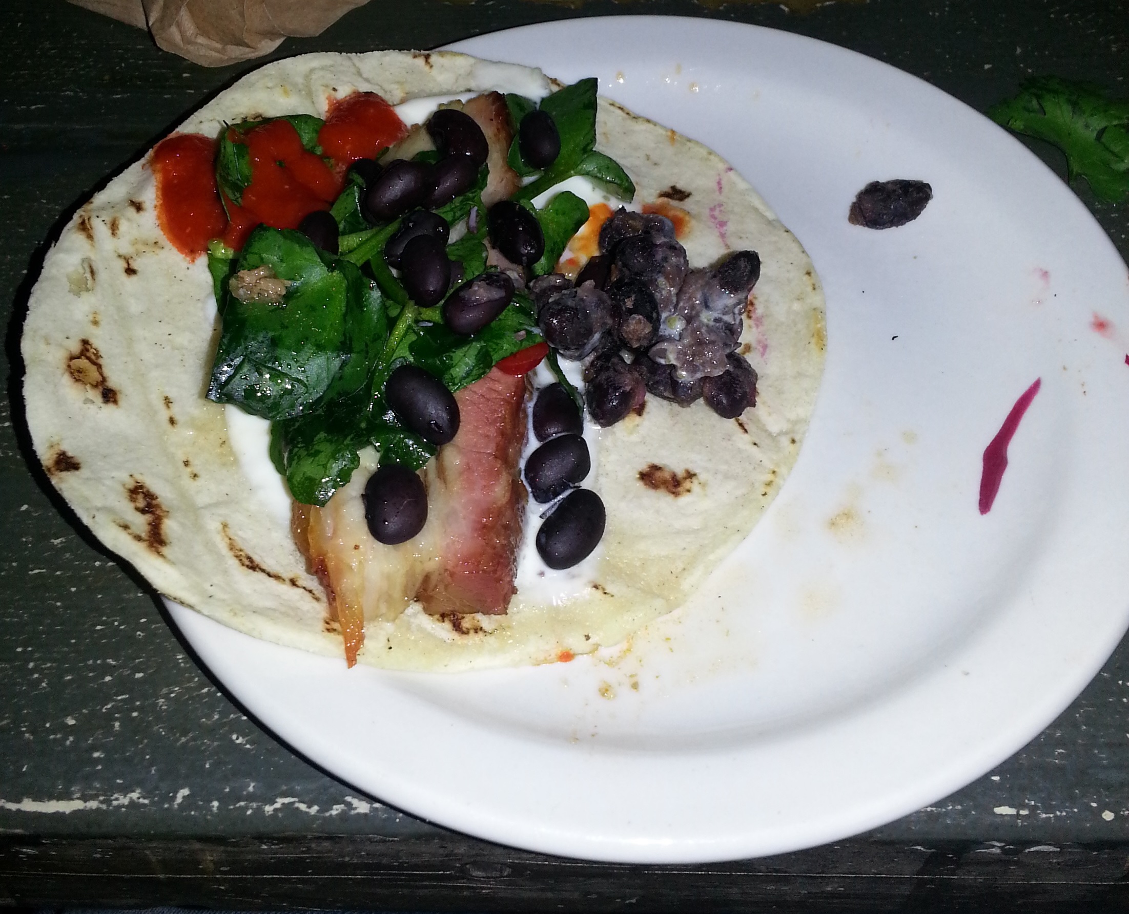 Now below I’ve included a single taco, the flanc de porc (pork belly and black beans, watercress and cream). This, along with the carnitas is one of my favorite tacos. Pork belly has been trending for some time and I was lucky enough to have my first real introduction to it while in Korea a few years ago. I didn’t need to be “sold” when it came to trying this taco for the first time. In all honesty the texture and taste of this taco just “works”.