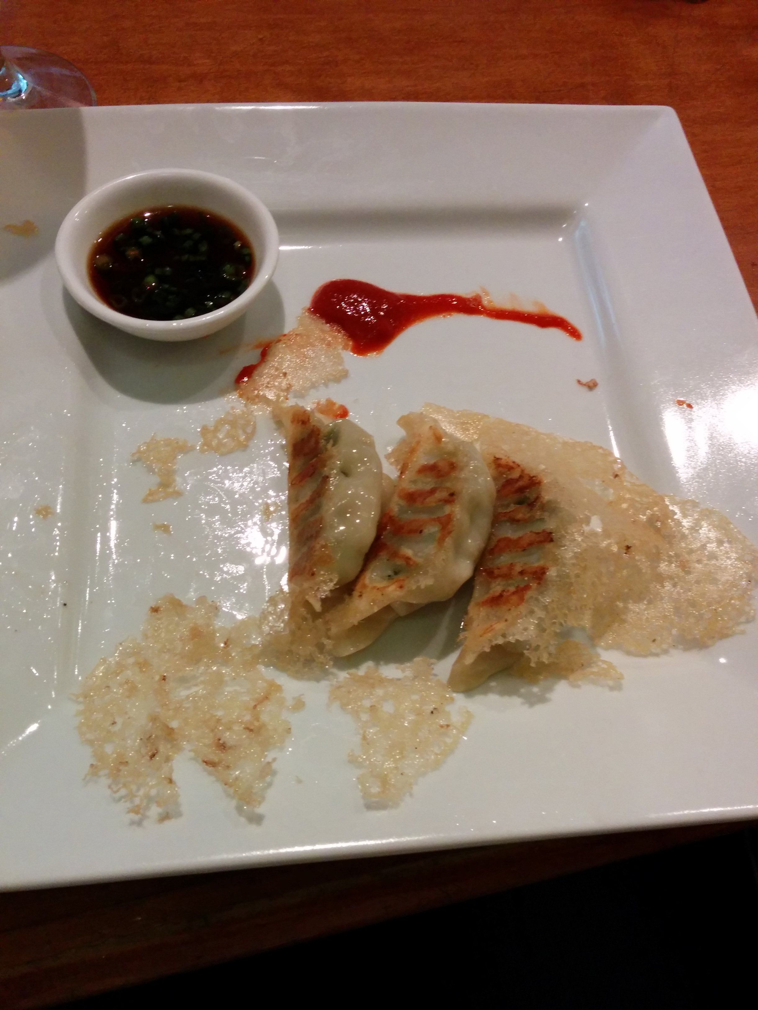Shortly there after I took up a seat at the bar, settled down and opened the menu. I was very tempted to try the Okonomiyaki or the shrimp burger or a yet a few other dishes that all looked delicious. Okonomiyaki was a dish that had been suggested to me while I was in Japan but I never got around to trying it. In the end I decided to go with some menu items I was familiar with: A set of dumpling appetizers and a main plate of Kalbi beef.