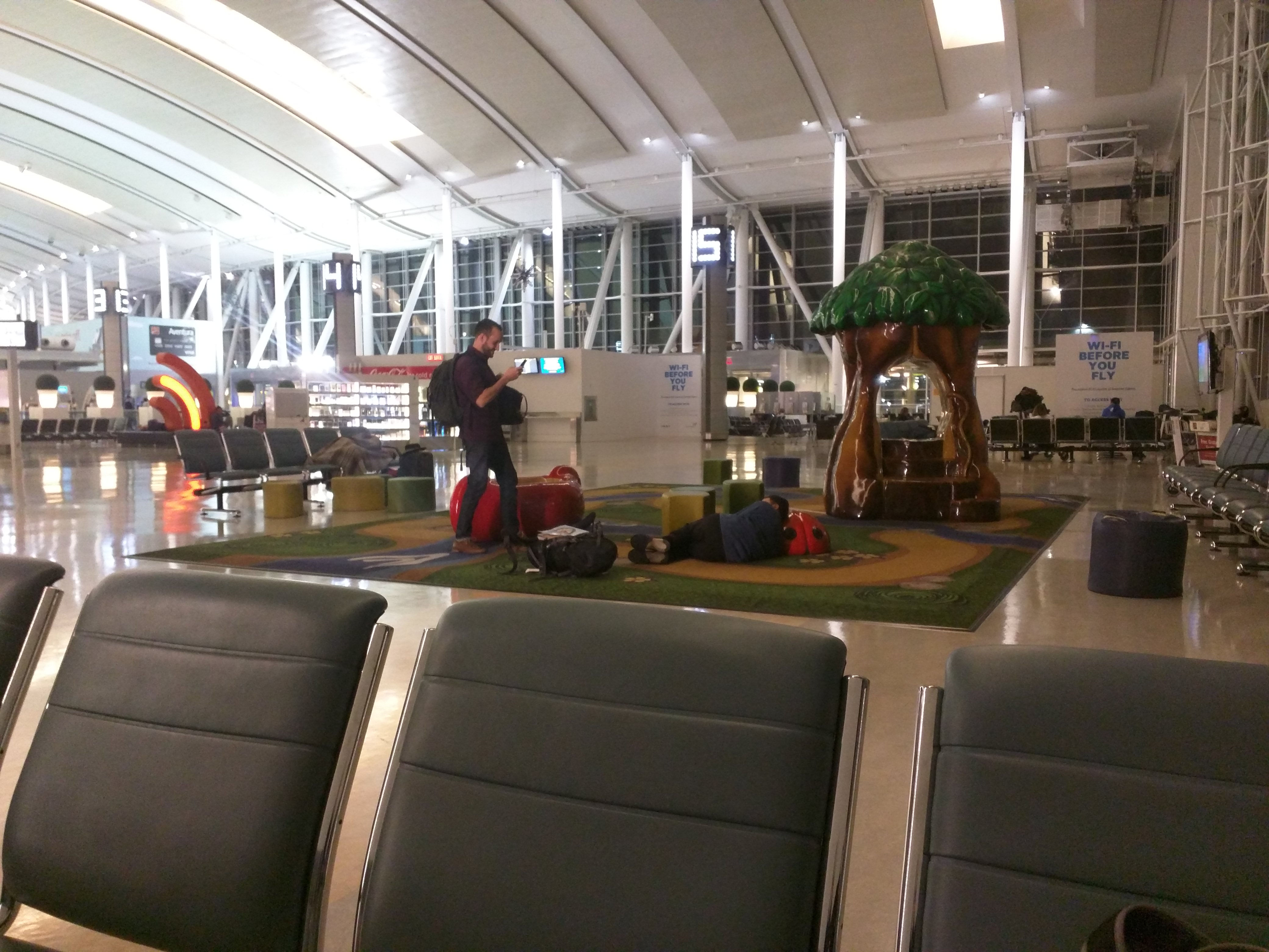 In order to get the best deals on our flights, 3 us flew from Montreal to Toronto the night before our flight from Toronto to Bogota Colombia. Because our flight got into Toronto airport late, we decided to sleep at the airport rather than spend unnecessary money on a hotel for what would amount to less than 5-6 hours. We had some fun at the airport before settling in for the night on the available chairs and play area.