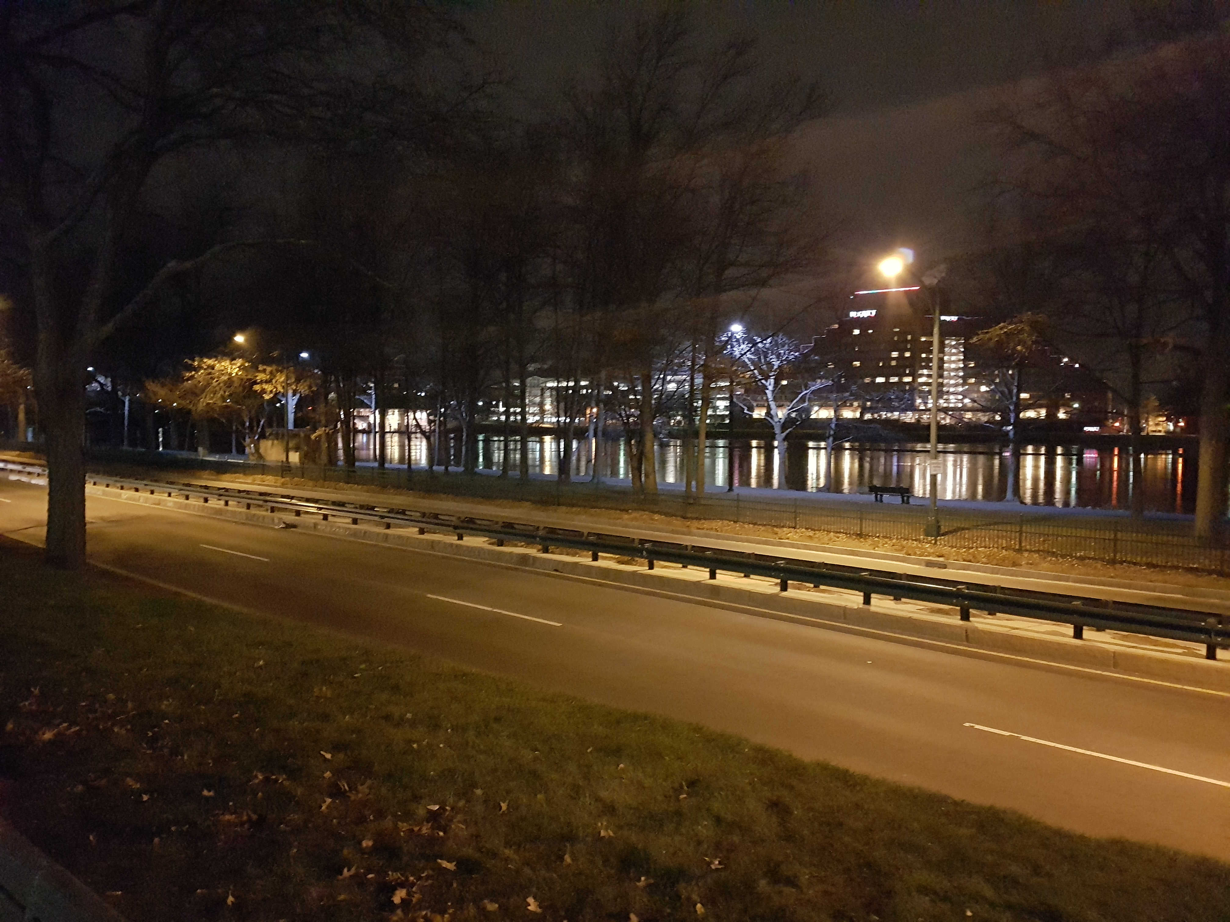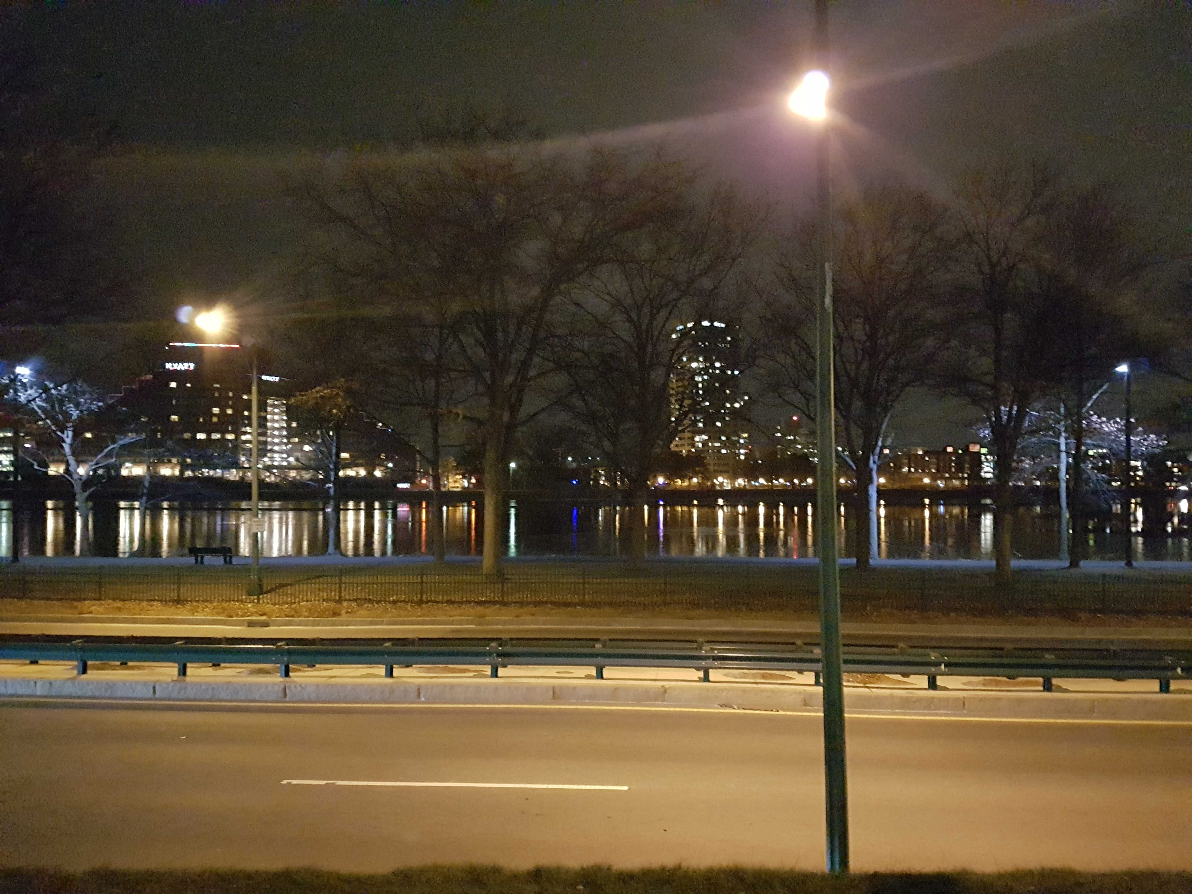 The walk back to the hotel was beautiful. I love wandering the streets of a city at night. I walked along Storrow drive which borders the Charles river. Snow covered the ground, the temperature had risen and the night didn’t feel as cold. This path also took me along the Boston University campus.