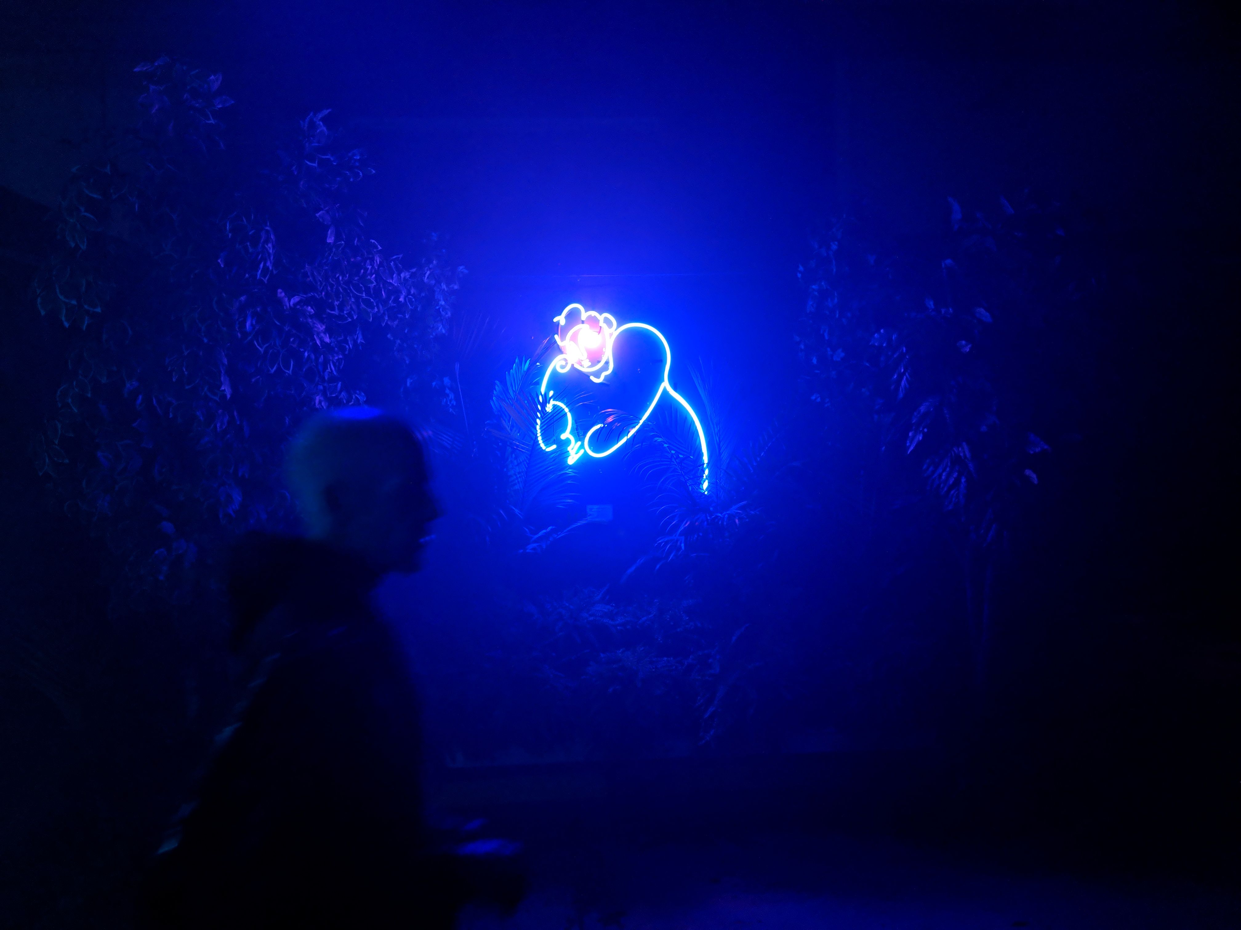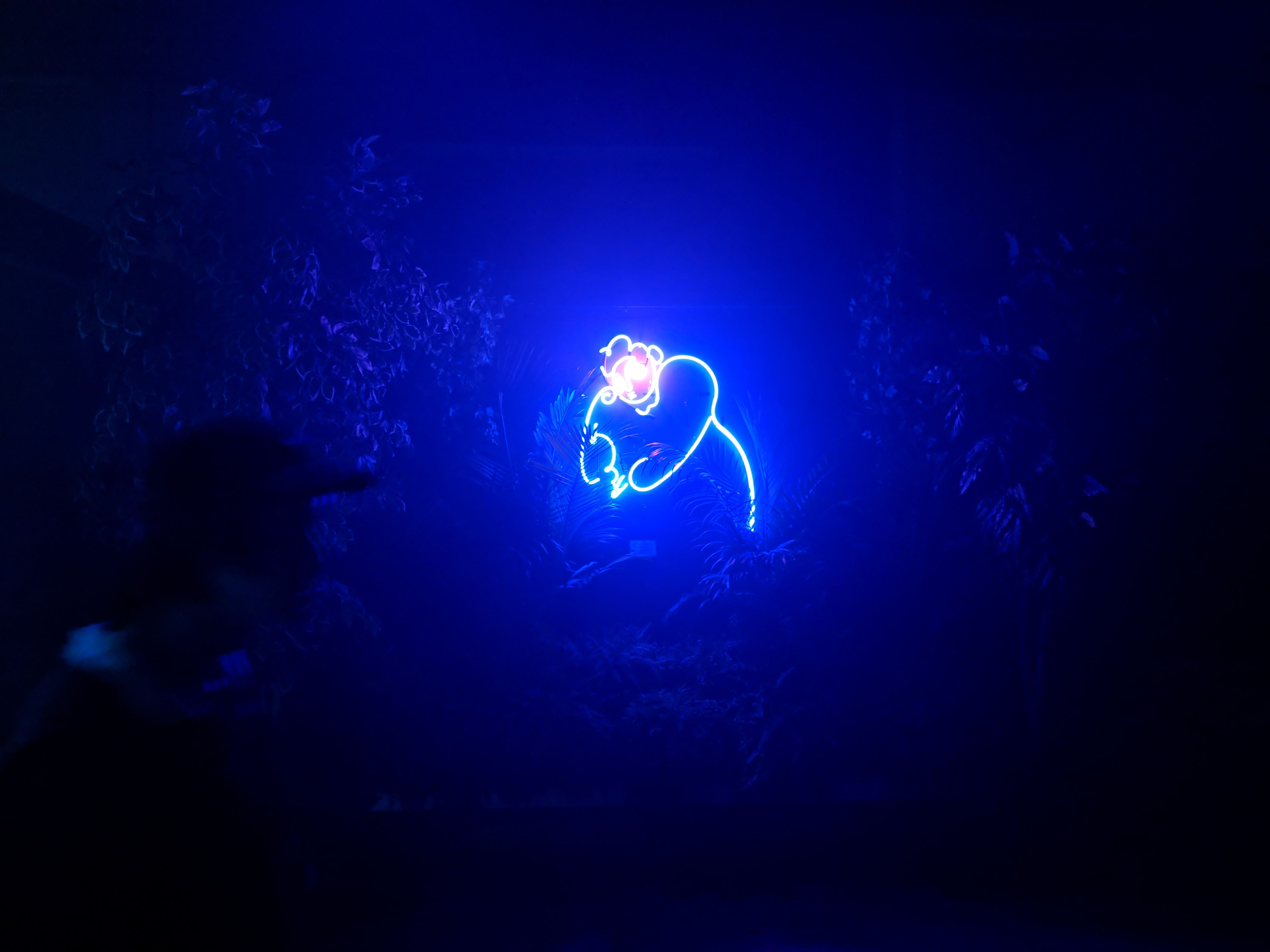 It was still early enough that there weren’t too many people in the space. Some time later I met up with my old roommate and the new girl he was seeing. Funnily enough while at the space he sent me a text message saying “We’re in the corner with the neon”. I lifted my head, looked at every corner in the place and they all had some type of neon. I laughed to myself and replied the same thing to him. “Dude, there’s neon ever where”. This despite me knowing what he meant. In one specific corner there were art pieces made to look like rooms via the use of “neon” lighting. The interesting thing about these pieces is that the edge of the designs would turn on and off. If you scroll through the images you’ll notice that some of the edges “go dark” in the shapes.